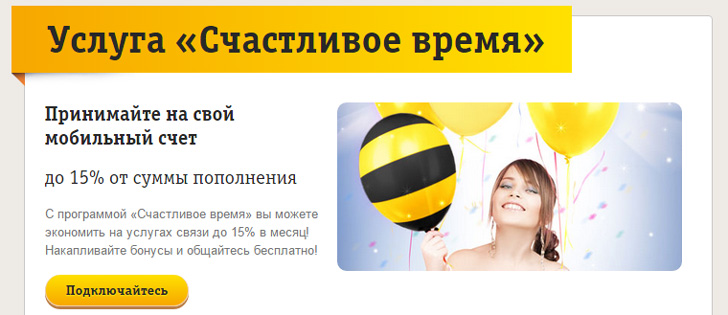 Программа такого образца для клиентов носит название Счастливое время и в рамках ее действия человеку выдаются специальные акцийные единицы. И именно про баллы Билайн как использовать их для дальнейшего пользования возможностями связи стоит поговорить в более детальном ракурсе.