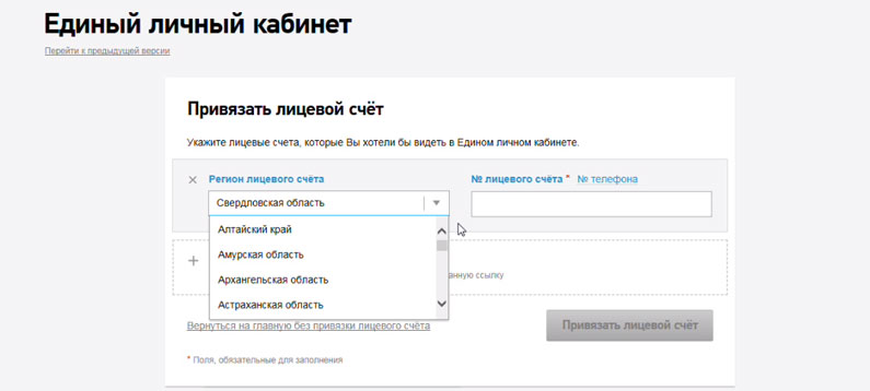 На главной странице личного кабинета пользователя будет находиться ссылка «привязать лицевой счет» при помощи данной ссылки вы можете привязать свой лицевой счет к аккаунта личного кабинета. Для этого вам следует ввести номер лицевого счета в открывшейся форме и соответствующем поле для ввода. Со своей учетной записи вы можете производить управление не только своими услугами, но и услугами своих близких, если добавите лицевые счета данных абонентов.