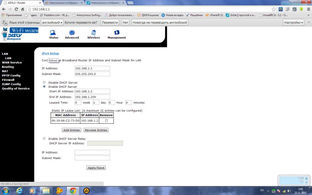 2. В адресной строке введите следующий адрес устройства: «192.168.1.1». Теперь нажмите на Enter.